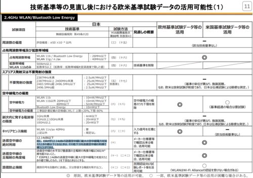 はじめに 総務省が 2.4GHz帯無線LAN等の欧米基準試験データ等の活用可能性について のスライドで、欧米基準に合わせようとしています。 特に気になる内容を見てましょう。 送信電力 26MHz以下は 10mW/MHzで変わりありません。 アンテナ利得 "12.14dBi以下。E…